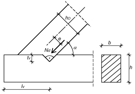 Ausmitte: Zwischen Druckstrebenachse und Druckfläche des Versatzes. Das daraus entstehende Versatzmoment ist bei der Bemessung der Druckstrebe zu beachten. ![]() |